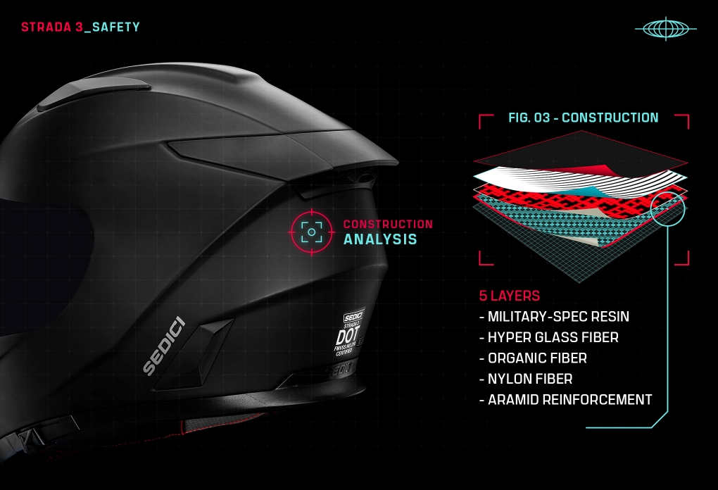 The Strada 3 features an advanced 5-layer shell design that seamlessly integrates strength and lightness. Drawing inspiration from the world of racing, its meticulously curved lower shell is engineered to minimize collarbone impact in the unfortunate event of a crash. Furthermore, the incorporation of enhanced aerodynamics not only guarantees superior stability but also significantly reduces wind noise, ensuring a smoother and more refined riding experience.