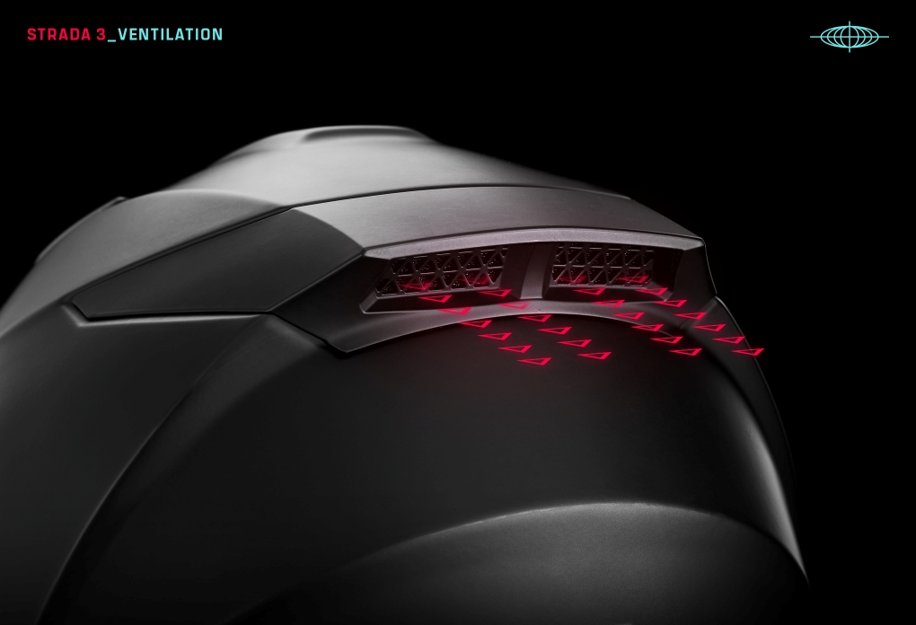 Recognizing the importance of airflow, the Strada 3 undergoes a thorough ventilation redesign. The intake and exhaust vents are meticulously optimized to ensure efficient moisture and heat dissipation across various riding conditions. Additionally, the redesigned rear vents and spoiler add a touch of style while further enhancing airflow dynamics.