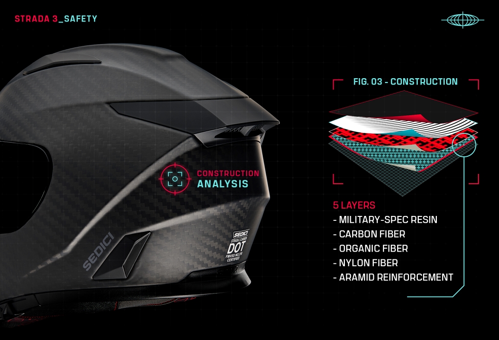 The Strada 3 features an advanced 5-layer shell design that seamlessly integrates strength and lightness. Drawing inspiration from the world of racing, its meticulously curved lower shell is engineered to minimize collarbone impact in the unfortunate event of a crash. Furthermore, the incorporation of enhanced aerodynamics not only guarantees superior stability but also significantly reduces wind noise, ensuring a smoother and more refined riding experience.