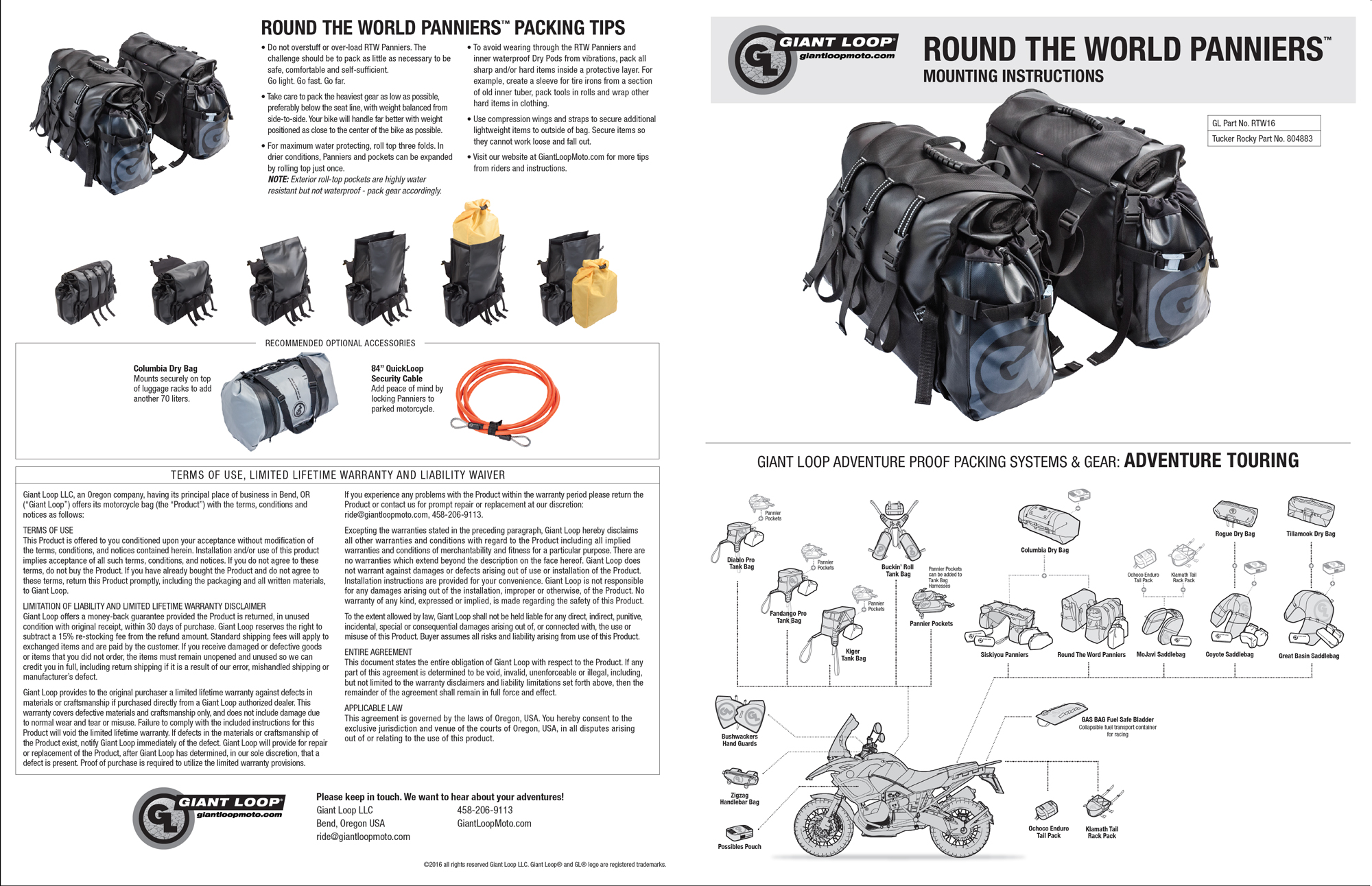 The Giant Loop Round The World Panniers are lightweight, durable and waterproof making them a great choice for that long off-road adventure. The hard mounted soft panniers are compatible with most luggage rack systems and deliver all the rack mounted benefits in a soft luggage package.