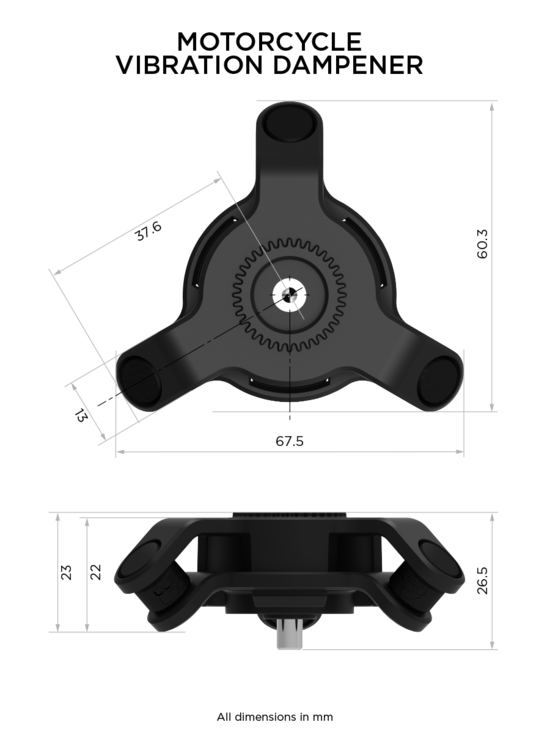 The level of vibration from some motorcycles can affect the image stabilization on new smartphones. The Quad Lock Vibration Dampener reduces over 90% of high frequency vibrations produced by motorcycles and ensures you can confidently mount your smartphone to any motorcycle. The dual chassis suspension system with precision engineered silicone grommets absorbs vibrations to protect your smartphone's camera. Quad Lock worked with specialists in the automotive and defense industries to put the Vibration Dampener through extreme performance testing.