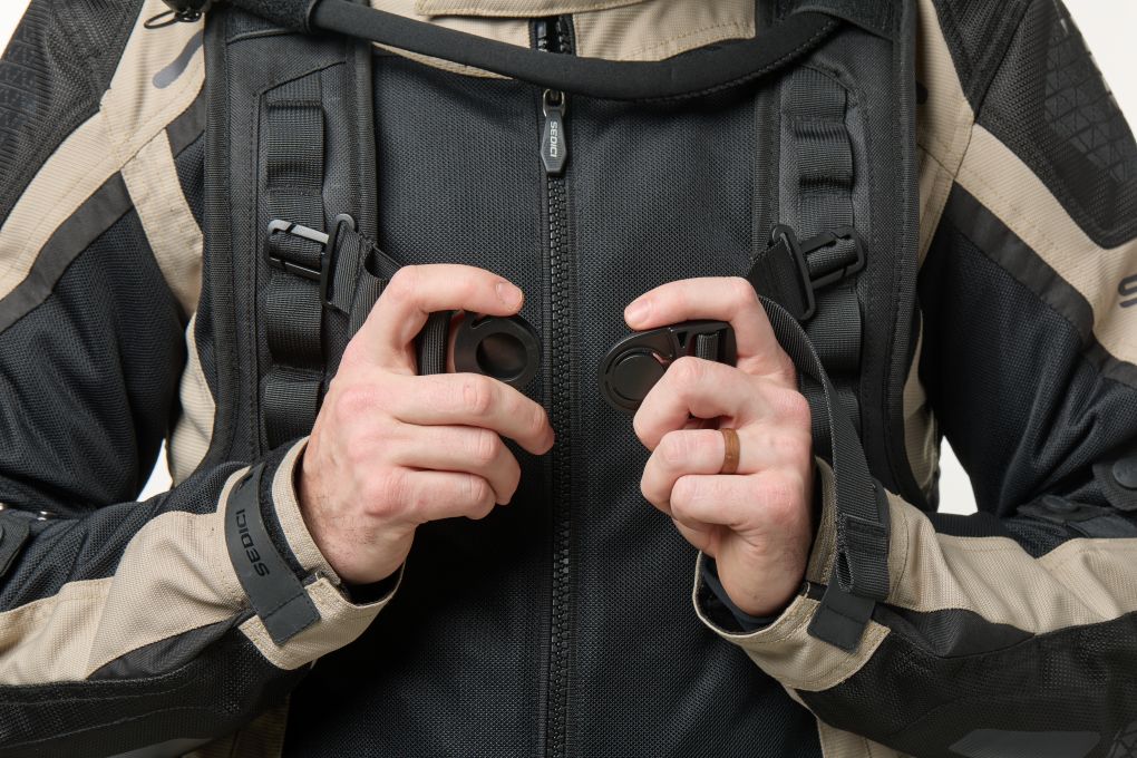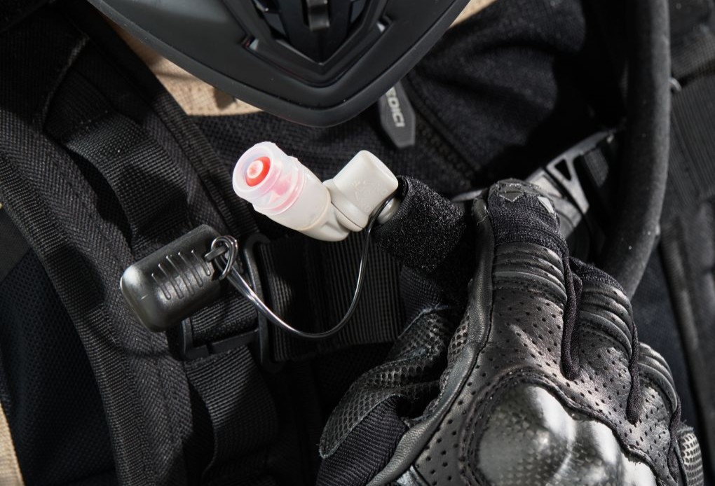 - Hook and loop locating mount for bite valve on both shoulder straps for easy locating