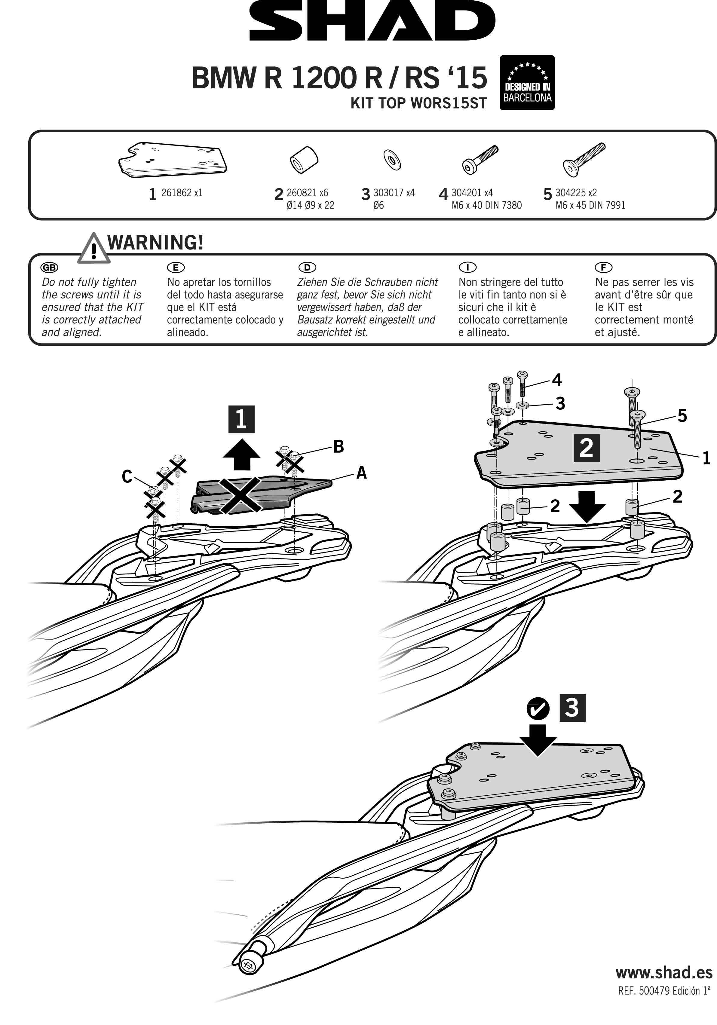 Shad Top Case Rack BMW R1200R / R1200RS / R1250R / R1250RS 2015-2024 w/o BMW Luggage Rack / Black [Open Box] Installation
