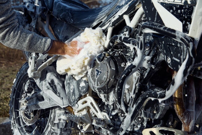 Allow Supreme Foam Wash to pre-soak vehicle, helping to loosen and lift dirt. Lather the bike with a soft and clean wash mitt, routinely rinsing to remove debris.