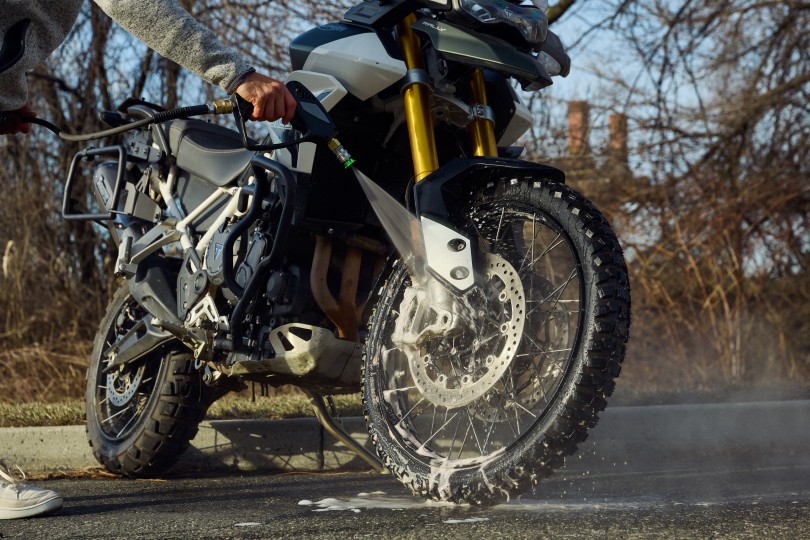 Rinse wheels & tires thoroughly with a strong blast from a hose or pressure washer.