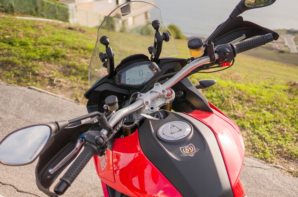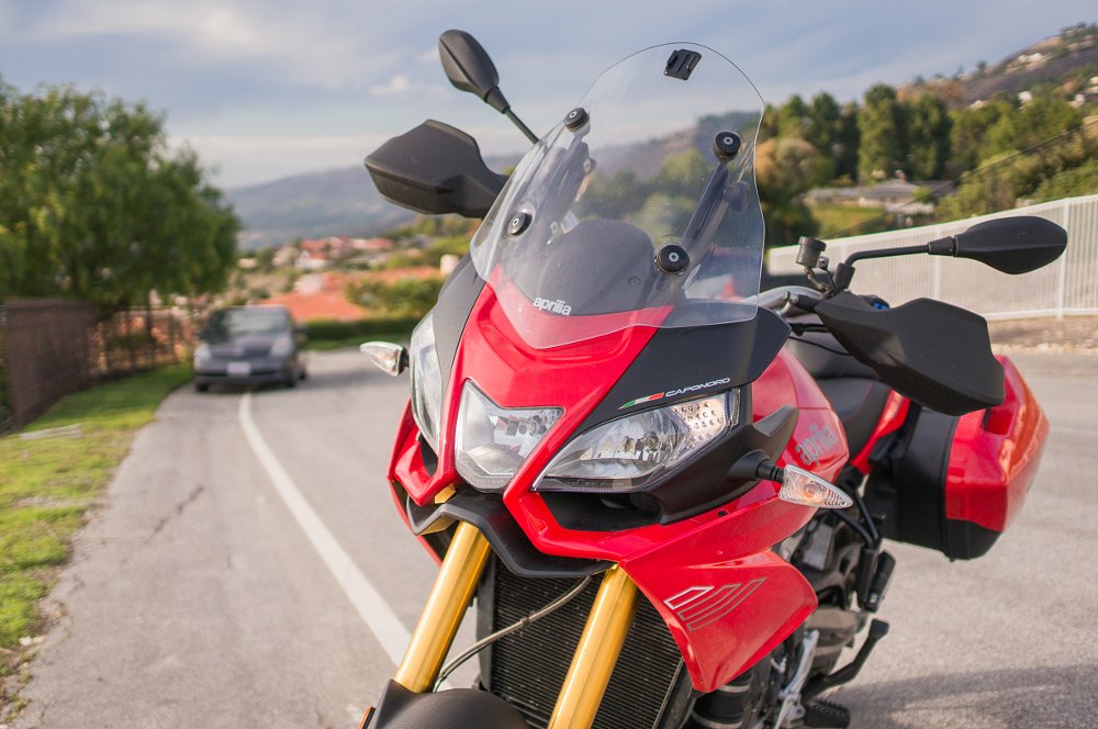 Aesthetically, the bike is sort of a mixed bag for me. I respect that Aprilia didn't copy the Multistrada beak, but throwing the RSV4 front on it just doesn't seem to fit. The overall fit and finish of the bike feels Italian, but muted somehow. It's definitely a nice-looking bike, and looks expensive if you're out to impress people, but it also looks a little plain, which misrepresents its riding character a bit.