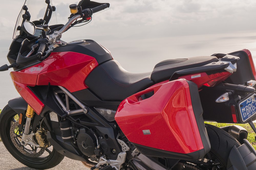 For the sake of testing this bike by every measure possible, I took a really pretty girl I like on a long day ride — again, just for science. Between the power, the high-caliber brakes, and the automatic suspension, the Caponord is excellent for riding with a passenger. The luggage is a bit small for any serious two-up touring, but the panniers were perfect for a camera and a few extra layers for when she (and by "she" I mean "me") got cold. Now if only I could get her to stop head-butting me.