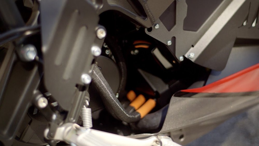 The Empulse is a compact package that feels itty bitty to me. Seat height is 31.5 inches and the wheelbase is only 58 inches. By sport bike standards, it's a little porky at 470 pounds, but let’s face it — the electric motor and batteries cannot be light. Those pieces, by the way, are said to put out 54 ponies and 61 foot-pounds of torque, and you can supposedly get over 100 miles on a charge. Charging on a normal 120V receptacle takes about nine hours (Victory cites different figures in different places) from a totally drained Empulse. Top speed is over 100 mph and all that tasty, torquey electric power is shot through a very interesting transmission. It’s a standard sequential manual six-speed box, with an odd neutral location between second and third gears. Similarly strange is the clutch. It is only needed for switching between gears. You don’t need it to take off or come to a stop.