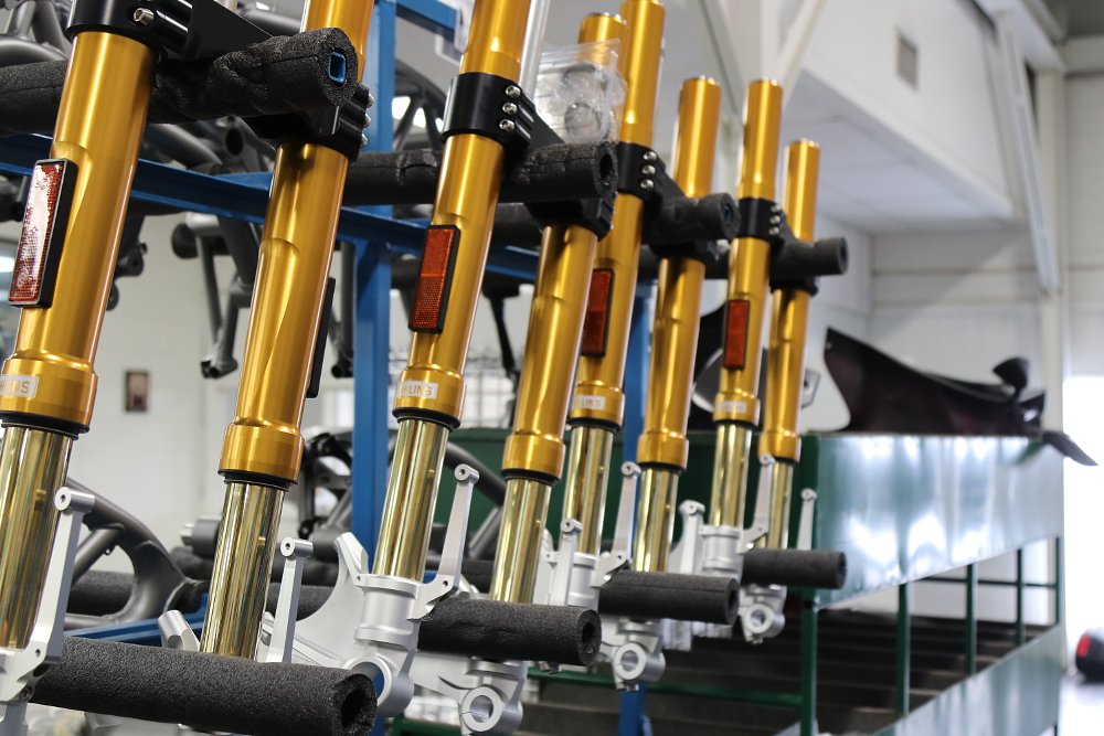 The chassis also comes into play with such a nice ride. The CroMoly steel trellis frame was developed with Pratt & Miller, an engineering firm known for their four-wheel prowess, but well equipped to tackle a motorcycle. The frames are gorgeous, and utilize the engine as a stressed component. And they’re handbuilt, which makes a lot of sense; I’d think that even with wonderful fit-up, a robot would struggle with some of the joints.
