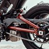 The most noticeable departure from the FTR750 is the use of a steel trellis frame with an aluminum rear subframe. The rear shock connects the frame to the tubular-steel swingarm which is modeled after the FTR750’s. The swingarm pivot connects directly to the engine, a design which Indian claims helps them to reduce the FTR’s overall wheelbase.