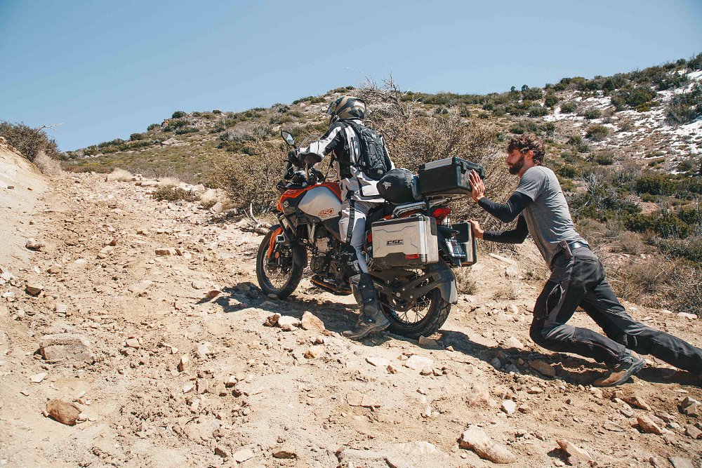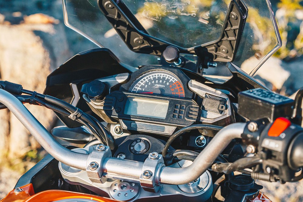 Another surprise is how firm the suspension is. So firm, in fact, that I backed out the rebound adjusters (there’s no compression adjustment) to free up movement. For lighter riders, the stiff springs may feel harsh, but at 175 pounds and with somewhere around 60 pounds of luggage on the back of the bike, I appreciated the extra support, and the setup is a big departure from the too-soft chassis on pretty much every other bike in the small-ADV category.