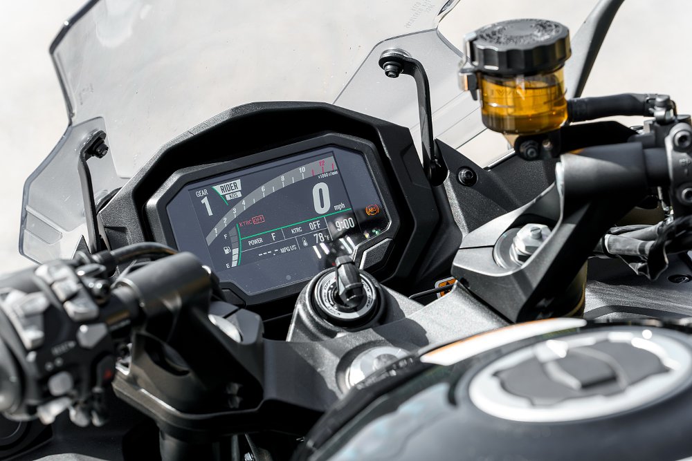 LCD dashes are about as cool as wired headphones these days, so Kawasaki adorned the SX with a beautiful 4.3-inch TFT color dash that offers multiple display modes. Throttle action feels the same as before, but the cables are go to a potentiometer, not throttle plates. Going fully ride-by-wire allowed for the addition of cruise control — an obvious boon for a sport-touring bike — plus three preset ride modes that combine different levels of engine power and traction control (KTRC is Kawispeak). A fourth Rider mode is customizable, which includes turning off KTRC.