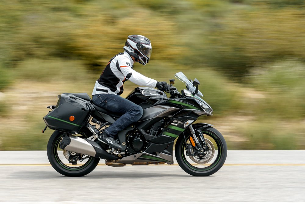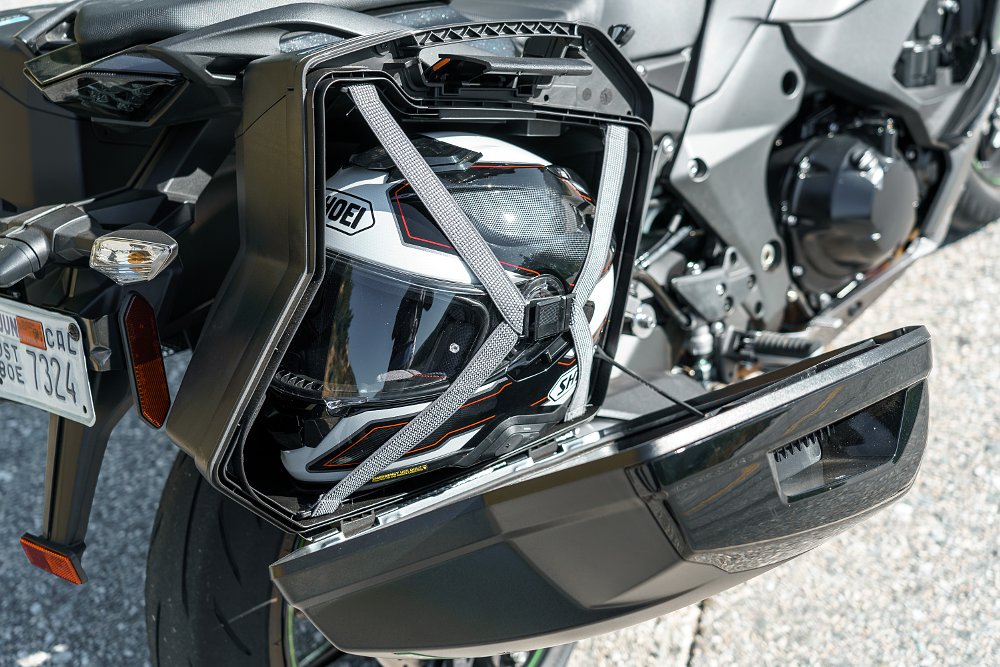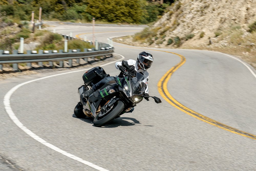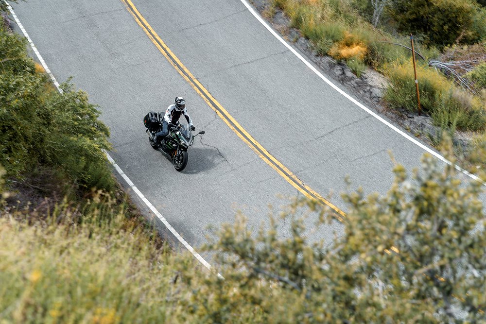 With those superb saddlebags packed with clothes and snacks and a few turns of preload spun into the shock’s handy remote adjuster to offset the weight, I point the Ninja south on the 101 freeway to test its touring chops.