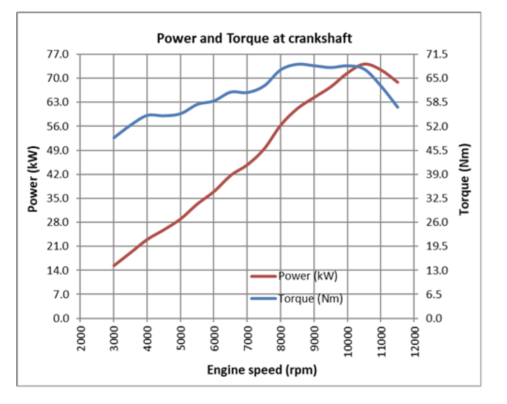 | Claimed horsepower | 100.0 horsepower @ 10,500 rpm |