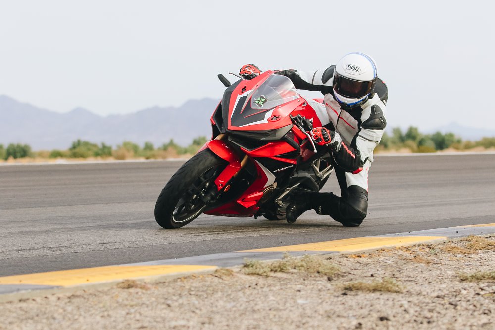 The first thing that stood out as I got warmed up and started to use the bike in anger is that the CBR500R, quite simply, does not get angry. Everything about the machine is smooth, steady, and polite. No matter how hard you twist the throttle, how abruptly you shift, or how badly you hamfist the brakes, the CBR abides. Zack (who was with us at Chuckwalla testing a CBR1000RR-R SP) said it best after taking the 500R out for a session: “It’s a lover, not a fighter.”
