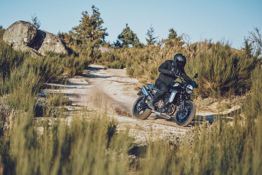 Husqvarna doesn’t expect the Svartpilen to stick to the paved path. Husqvarna photo.