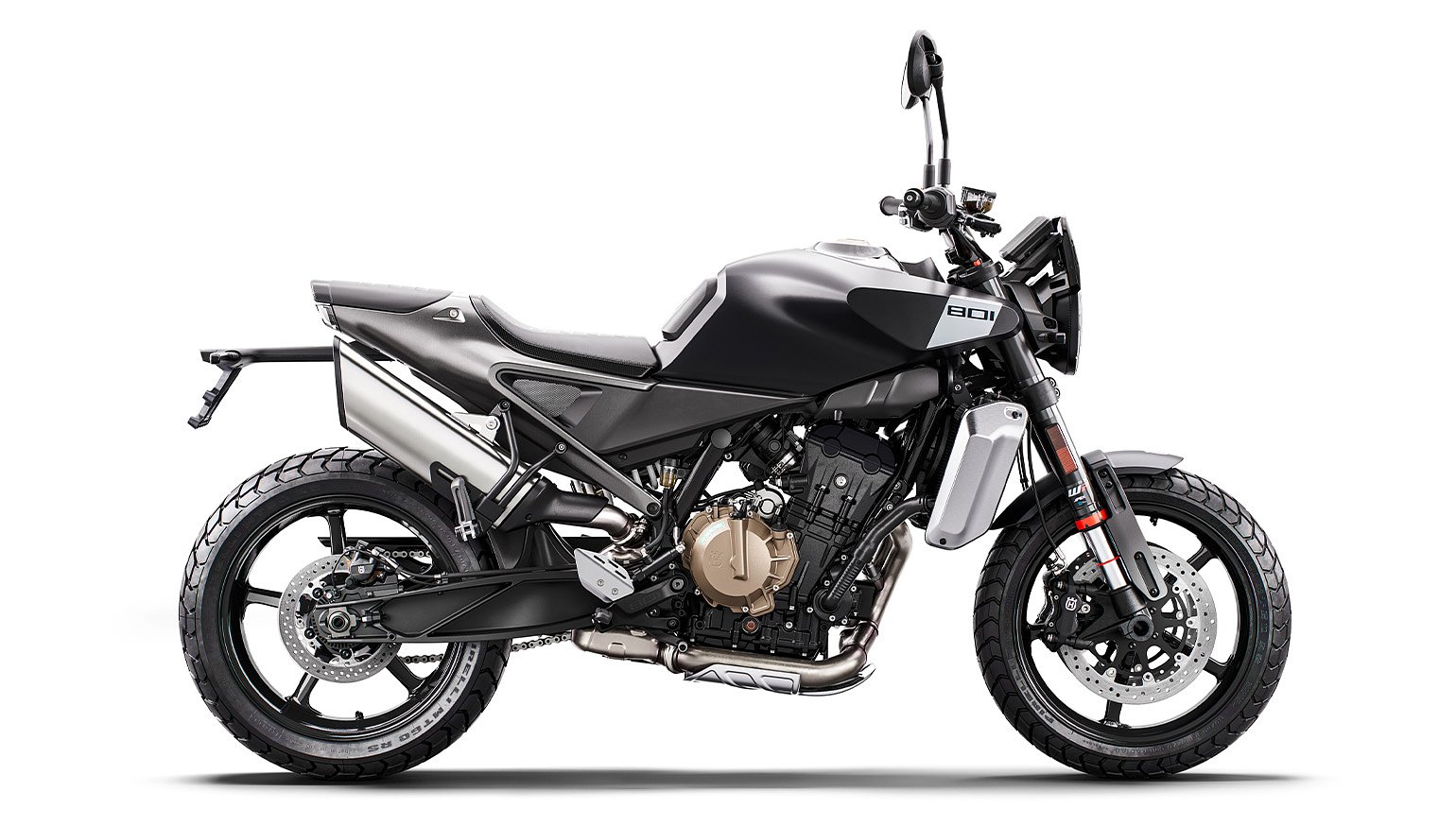 The 801’s WP APEX suspension and 17-inch wheels hint at its on-road pedigree. Husqvarna photo.