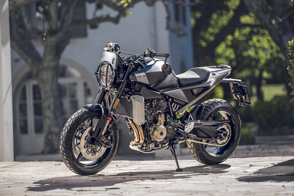 A babbling brook, linden trees, and an 18th-century French country mansion (shutters and all) wait just beyond the conference room windows. On the other side, it’s a very different scene. Technical specifications, graphs, and charts project on the screen. Cast aluminum subframe panels and a fully built LC8c engine clutter nearby tables. All the slides and props tell the same story: the twin-cylinder Svartpilen 801 is superior to the single-cylinder 701 it succeeds. There’s just one problem. The 801’s story is less about succession and more about sibling rivalry.