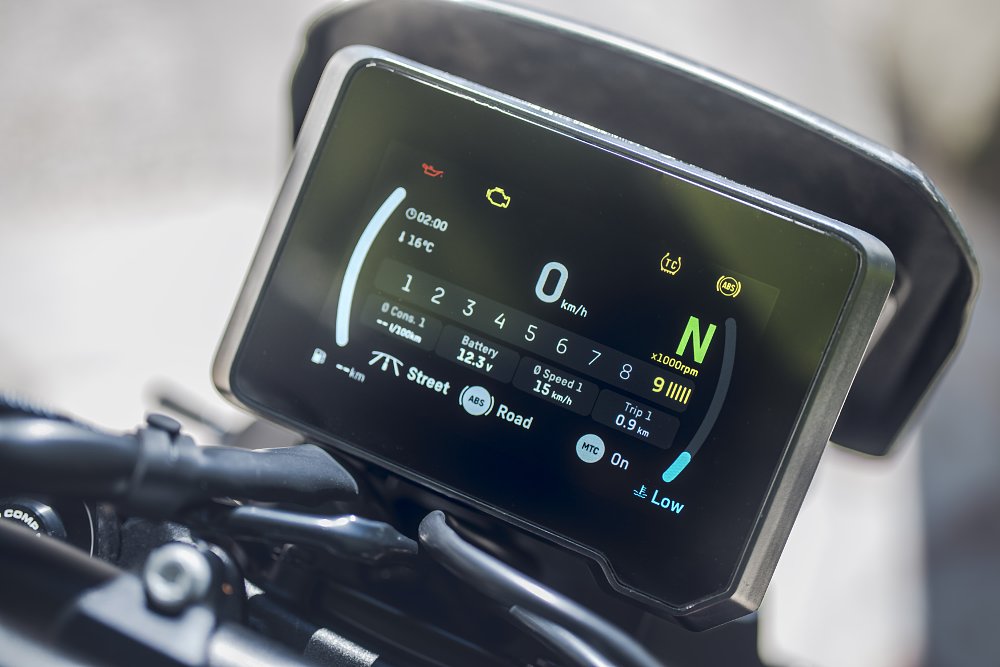 The only nit I can pick with the user experience is the TFT’s bar-style tachometer. With no quarter or half markers between the numerical figures, knowing where you are in the rev range can turn into a guessing game. Luckily, two shift indicator lights (yes, two) signal the rider to upshift at 8,500 rpm and just over 9,000 rpm. Whereas both lights flash in Husqvarna yellow, the first bisects the screen (at a diagonal angle) while the second takes over the entire display, imploring the user to grab a gear before hitting the 9,800-rpm rev limiter. It isn’t a replacement for a more accurate tach but it's a nice consolation prize, nonetheless. You win some, you lose some.