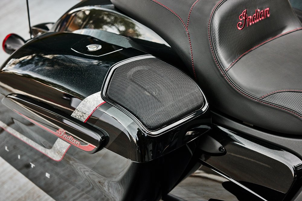 Indian amped up the PowerBand's sound by adopting 100-watt speakers, which deliver an “increase in volume and clarity over the standard 50-watt speakers.” The new Bass Boost Tune results in 50% more bass, while the new Dynamic EQ auto-adapts audio quality to the current speeds and conditions. The speakers themselves also improve in the looks department, with titanium-plated domes and UnderGlow LED accent rings.