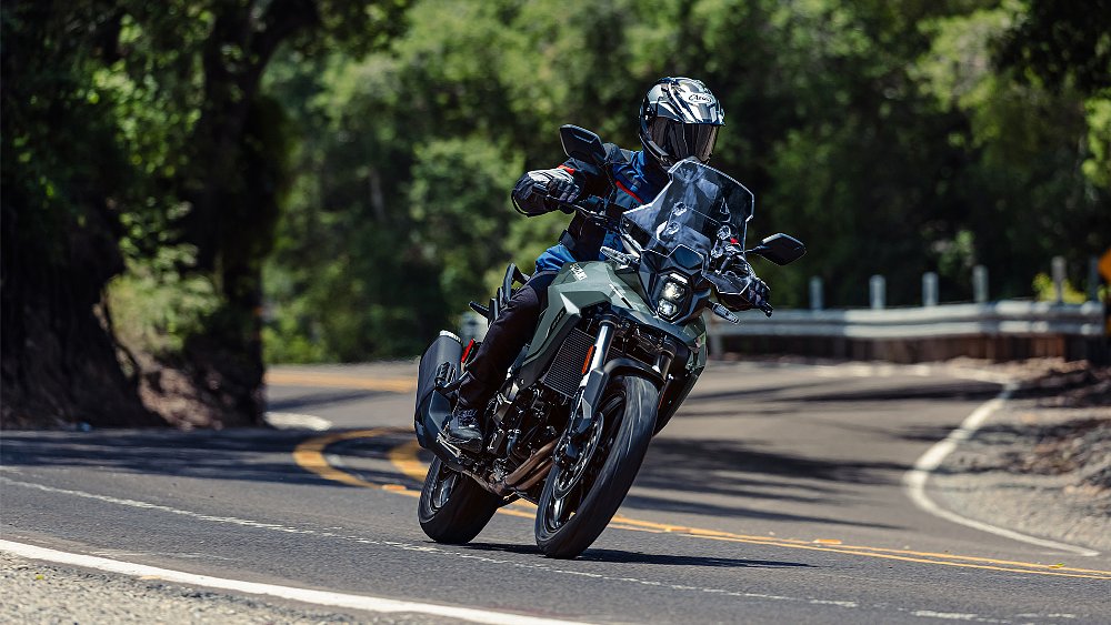 Suzuki’s all-new 776 cc parallel twin largely impressed in the GSX-8S roadster and 800DE. Not fixing what isn’t broken, the Hamamatsu house carries that mill over to the new, street-skewed V-Stroms. The 270-degree p-twin retains the DE’s tune, spooling up to 83 horsepower (at 8,500 rpm) and 57.5 foot-pounds of torque (at 6,800 rpm). It also hangs from the same steel backbone frame underlying the trail-going sibling.