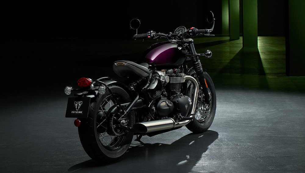 The Bonneville Bobber in Purple completes the cruiser-style Stealth Editions and comes similarly priced (to the Speedmaster Stealth) at $14,595. Triumph photo.