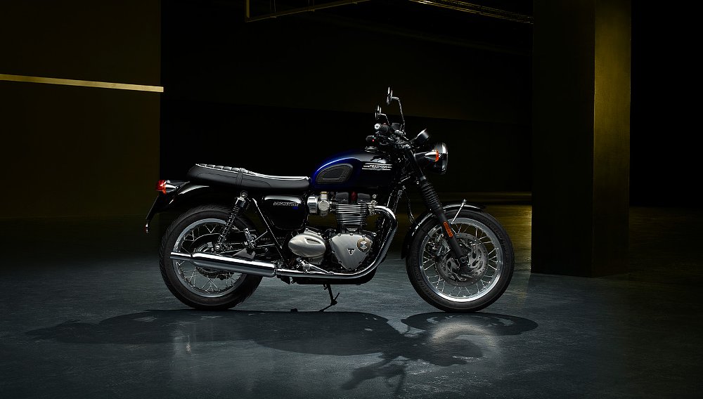 With a retail price of $13,495, the T120 Blue Stealth tacks $800 on to the standard model’s MSRP. Triumph photo.