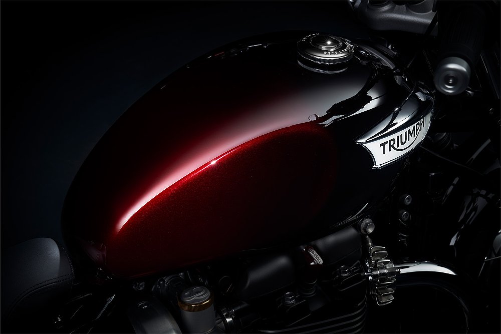 The painting process consists of a metallic ‘Silver Ice’ base, ‘Sapphire Black’ graphite vignette, and multi-layer tinted lacquer. Triumph claims the gradient reveals various hues and tones “under different conditions and appearing different from every angle.” The hand-painted finish also results in subtle variations between each unit, further individualizing the Stealth Editions.