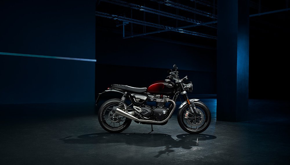 Similar to the Speedmaster, the Speed Twin 1200 dons Triumph's Red Stealth paint scheme but only costs $13,695. Triumph photo.