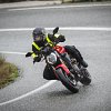 As we navigated a series of perfect low mountain twisties, the Monster hummed happily along, nimbly responding to my inputs instructing it to brake and turn, avoid fallen debris, or suddenly straighten up to ford a small stream spreading across the road. The Monster comes stock with 120/70ZR17 front and 180/55ZR17 rear Pirelli Diablo Rosso IV tires, which performed impressively in the challenging conditions, with the rear only letting slip when confronted with an unreasonable combination of lean angle plus rivulet in a situation outside of the purview of the rider's aids.