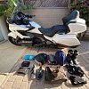 All of the stuff that went into the cases for this trip. The bags weren’t full, but it was close. The passenger handles have been made larger and easier to access, evolving into loops of metal instead of just a lip to hold. Perfect for strapping a set of leathers to, it turns out. Photo by Zack Courts.