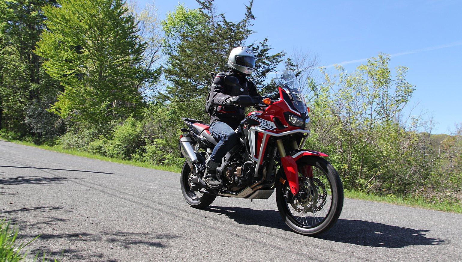 In my time riding the Africa Twin over the last year and half, I’ve quickly learned that DCT is the bomb in traffic. For all the virtues of a traditional clutch, I don’t know anyone who enjoys using one in congestion. In contrast, the Honda’s “auto” made the ride past New York City as painless as possible. DCT can be operated in three modes: Drive, Sport (three levels), and Manual via shift buttons. Sport 3 was pretty decent for just riding around, and Manual’s what you want when it’s time to have fun. I liked Drive least because it just short-shifts, but in the heaviest traffic, Drive earned its keep. It’s very smooth, perfect for the constant stop-start crawl of gridlock. Once the traffic clears up, click into Sport 3 or Manual. Honda’s parallel twin has all the power I’d want for a machine of this size, and it has a respectable roar when wound up. I’ll go so far as to say it’s pretty rowdy for a Honda twin.