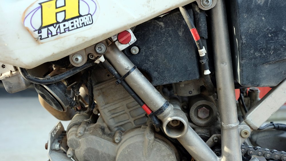“You pack a ton of spare fuses, obviously. I also wired the bike to a central power distribution module. Power was on one side of the bike, and ground was on the other. I ran an extra power and ground wire, but I ran them to opposite sides of the bike, so if I had a crash on one side, and something was damaged, its replacement was on the other side of the bike.”