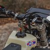 The centerpiece of Killian's Baja-inspired build is a twin-headlight setup from Holy Moly Motorcycles in Portugal. It features twin 5,000-lumen 50W lights with interchangeable white and yellow lenses for different conditions. Surrounding them is die-bent alloy tubing with laser-cut panels that enhance the look while providing essential protection. Mounted above is a HugeRock X70 navigation tablet, a must-have for "off the grid" adventures, that's controlled via a URSAE roadbook controller so he can keep his hands on the handlebar.