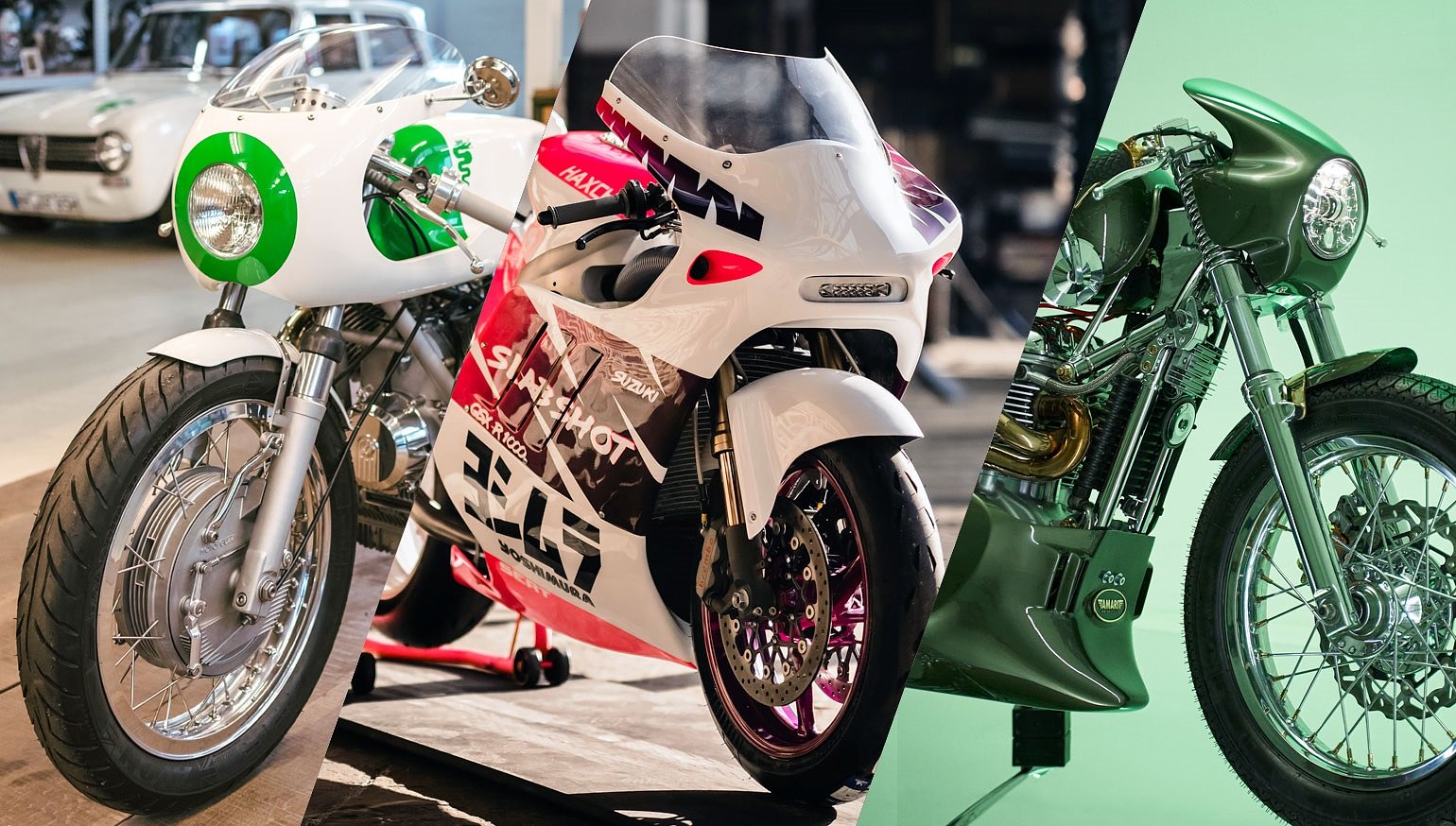 First, we'll take a look at a UK-built modern Suzuki in 1980s attire. We then head to Germany, where Kaffeemaschine has put together an Alfa Romeo-inspired Moto Guzzi. And lastly, we stop over in Spain to check out a Triumph Thruxton that's been named after a big angry green brute.