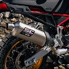 The differences are mostly subtle, but aimed at tackling difficult terrain. The front fender is now high, dirt-bike style, instead of the low, street-like fender on the regular Tuareg. The Rally is fitted with a sturdier aluminum skidplate, reinforced handguards, and an SC Project exhaust with a titanium muffler.