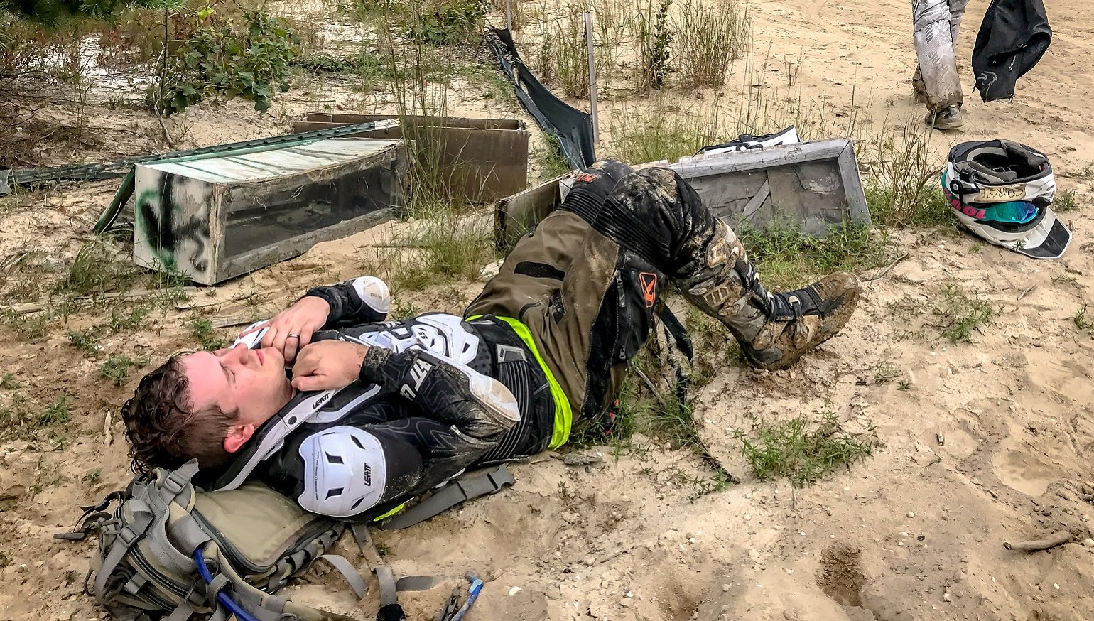 First, let's assume that you or your riding buddy went down and heard or felt the proverbial crack somewhere between your knee and your ankle. We will also assume that you have purchased excellent gear (from RevZilla.com of course!) and are sporting a fine pair of off-road boots. This leaves your fractured lower leg encased in a helpful boot splint. There may be a period of little pain that will tempt you to remove your boot and see what has happened. This is a bad plan, a very bad plan.