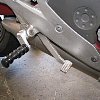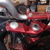 Then the belly pan wouldn’t go back on. If the holes lined up, the tabs and slots didn’t, and vice versa. While lying on my back with sweat pouring into my eyes it occurred to me the belly pan’s only contribution was aesthetic. It now lives on a high shelf, and the homely underside of the engine is defiantly exposed. My dreams are now haunted by visions of a streetfighter conversion that does away with the entire fairing.