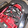 While it was by no means a beater, the Ninja hadn’t been ridden regularly for some time and needed a big helping of TLC. It exhibited the eccentricities of some high-mile, one-owner bikes, such as over- and under-torqued hardware, improvised repairs that were somehow never made right, cracked plastic (“See that flame decal?” Larry said, pointing to the fairing. “Don’t peel it off. There’s a big hole under it.”), and a kudzu vine of accessory wiring under the seat. On the plus side, the chain and sprockets were new and the tires, though installed six years ago, were still good.