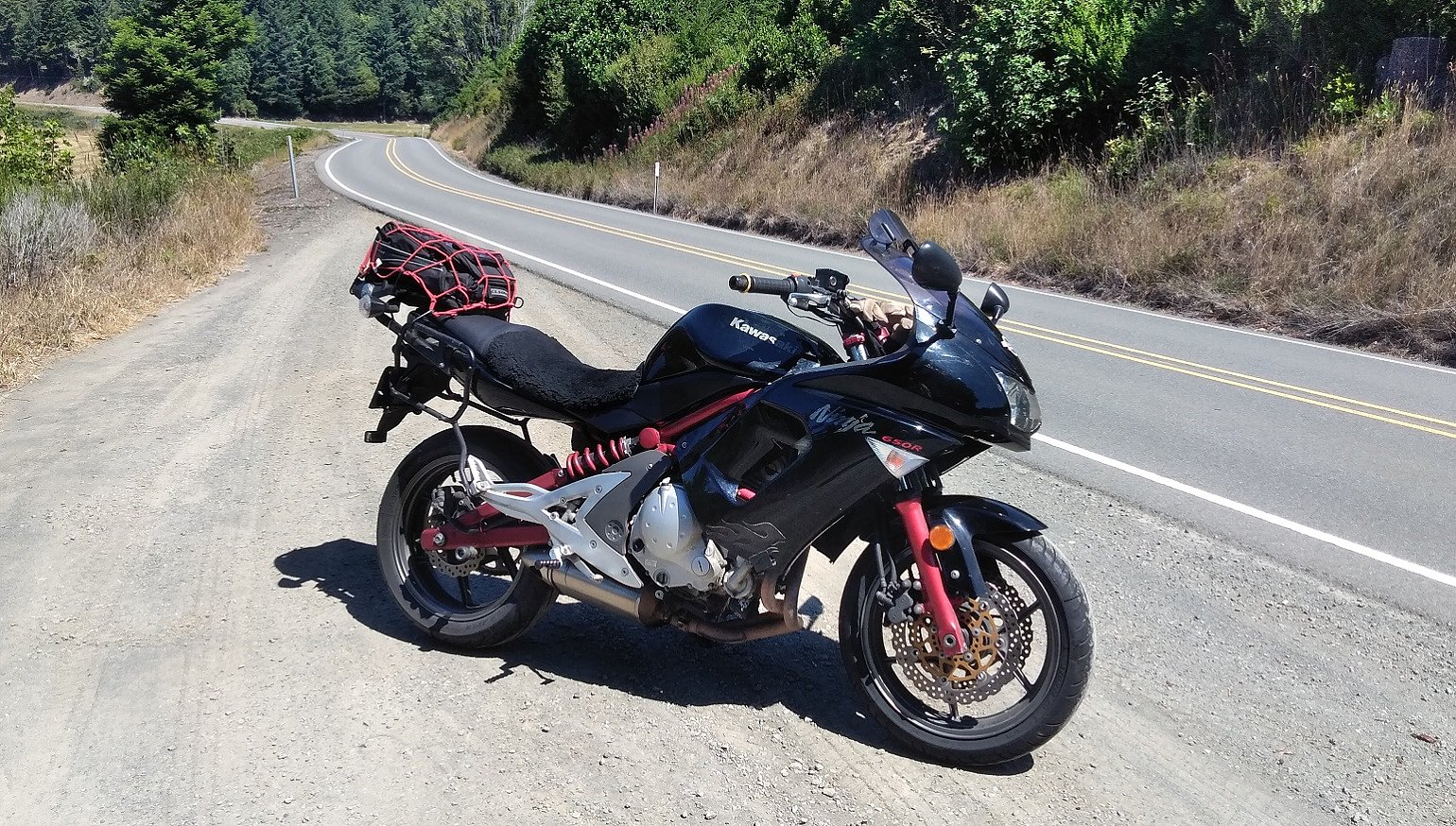 Not long ago, my friend Larry decided to thin the herd of eight or nine bikes and scooters in his stable. I had ridden one of them, a 2006 Kawasaki Ninja 650R, and liked it. To my surprise, he offered me a knockdown price on it, an entirely affordable $750. That’s not a typo. The Ninja ran, had some useful accessories like heated grips and a volt meter, and showed 35,391 miles on the odometer, a number I was assured by those in the know indicated the bike was barely out of its adolescence. Larry even threw in Givi hard cases and a track stand. How could I say no?