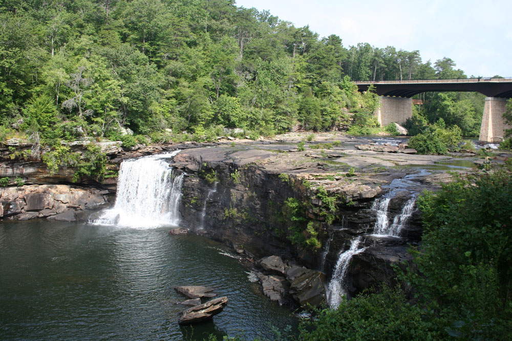 That's how I find myself admiring the view at the overlook just below Little River Falls in the Little River Canyon National Preserve. Except for the glimpse of Alabama Route 35 beyond the falls and the improved trail I’m standing on, the view is one of trees, rocks and tumbling water, a scene carved by nature, not humans.