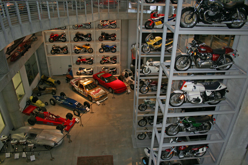 We all have our own version of motorcycle obsession. George Barber's is buying them. All of them or any of them. His motorcycle collection now numbers about 1,200, and at any given time, 600 or so are on display in the impressive five-story building next to the race track. The building and track are works of art themselves. Many roadracing tracks in this country are strips of asphalt surrounded by weedy patches nourished only by the occasional spilled beer, so the manicured grounds of the Barber Motorsports Park, with their grassy spectator mounts, flower beds and whimsical sculptures are a welcome surprise, and testimony to George Barber's insistence on building something of quality.
