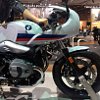 First up is the Racer. It’s a half-faired model, evocative of the old R90S, a downright sexy machine to riders of many ages. I’m not in love with the abbreviated passenger seat-cum-racer hump, but this looks like a practical motorcycle. I also am seeing a standard right-side-up fork. Attached to that fork are lower-spec four-piston calipers, a downgrade from the monoblocs on the original R nineT.