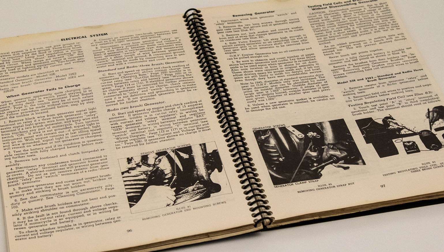That’s pretty self-explanatory. I have a very, very ancient shop manual that I love dearly. I consult it very regularly, as it covers two of my own motorcycles and a few owned by friends.