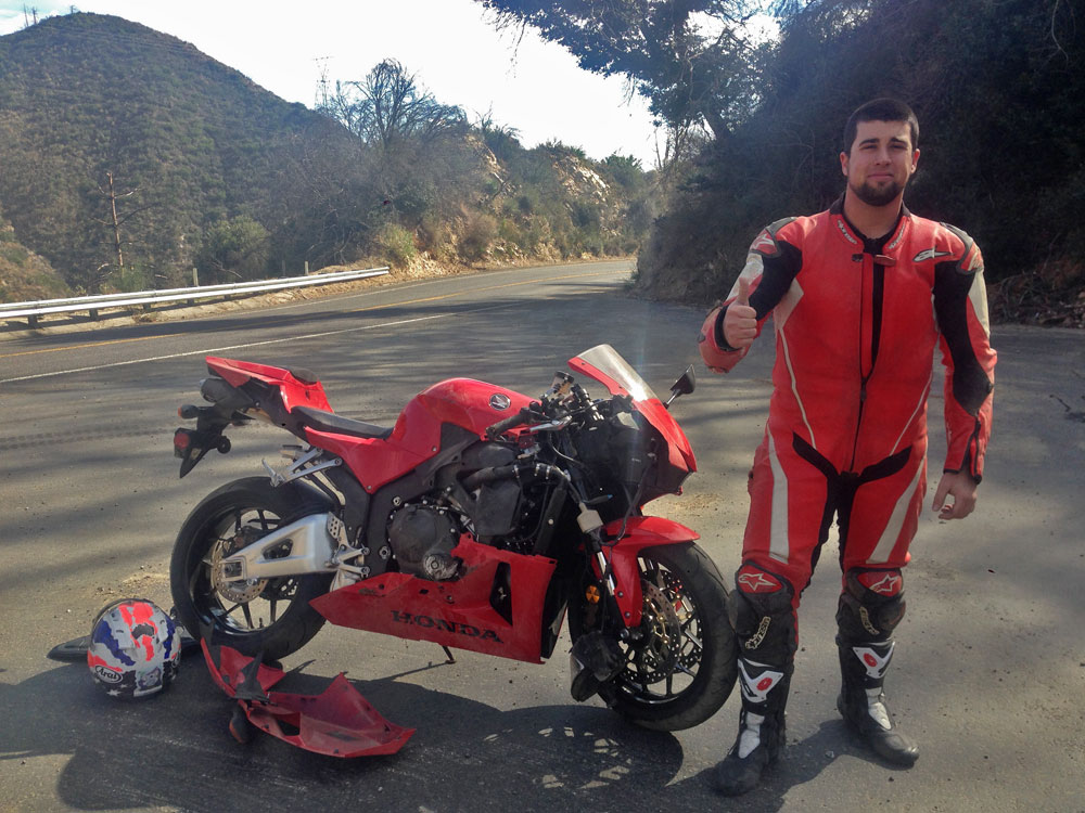 We met again a few weeks later to hit Angeles Crest Highway and get some photos of the suit. He gushed about what a big difference the tailoring made when riding in the suit. Unfortunately for our photography mission, he hit a gravel patch and low-sided a few turns up the hill that cold morning before we could get any glamour shots on the bike.