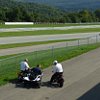 Three of the MotoAmerica principals find a private spot for a discussion during a practice round at Pittsburgh International Race Complex. Photo by Lance Oliver.