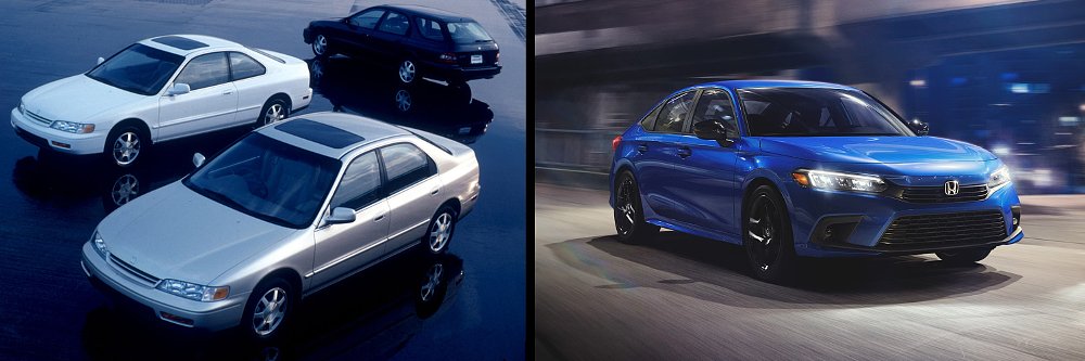 It's not just motorcycles that keep getting bigger. As noted in Highside/Lowside S08E01, modern-day Honda Civics now rival old Honda Accords. Honda lists the 2024 Civic EX at 180 horsepower and 177 foot-pounds of torque, while the 1994 Accord EX reportedly produced 145 horsepower and 147 foot-pounds. Both models share similar dimensions (length and width) and curb weights, as well. Honda photos.