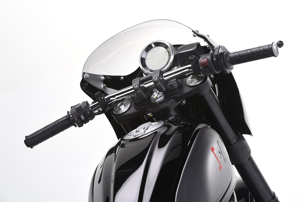 The Deus Full Throttle is easily the most polarizing of the three customs. While most of it isn't my cup of tea, I do like that they've solved my biggest problem with the aesthetics of the bike: the curve in the frame under the seat. Maybe I'm weird, but the lack of a flat seat makes the Scrambler look far more strange to me than the low pipe, mostly because adding a high pipe will be easy. I'm not in love with how the rear cowl tapers at the end in this version, but forming it to hide the rear frame of the bike is pure genius.