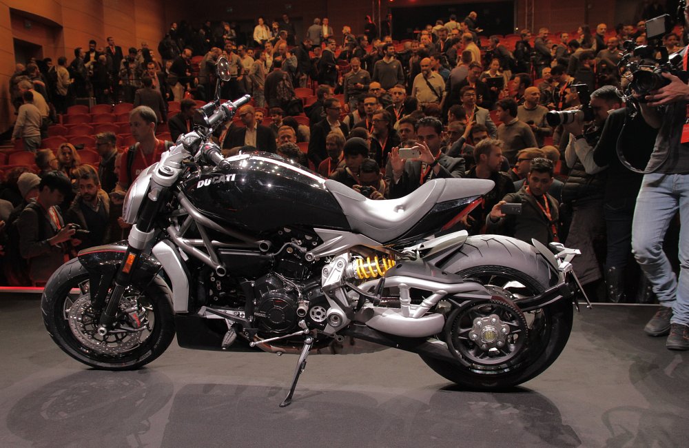 On the eve of the EICMA show, Ducati CEO Claudio Domenicali unveiled the new Diavel sibling, the XDiavel. Ducati says the “X” represents the intersection of feet-forward cruiser styling and lower-speed fun with the performance the company is known for.