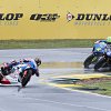 The last strong shower of the day delayed the start of the Supersport race, which was shortened to 14 laps. Beach, Anthony Mazzioto and Gillim got away from the rest of the field at the start. On lap four, Gillim got past Beach and gradually pulled away. Meanwhile, Yates found his rhythm and began hunting down Mazzioto, catching and passing him on lap six. While several riders behind them crashed in the wet conditions, the top four positions stayed the same to the end.